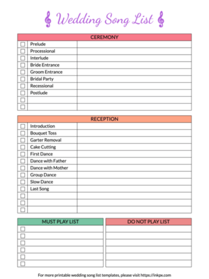 Printable Simple Wedding Music Checklist Template InkPx