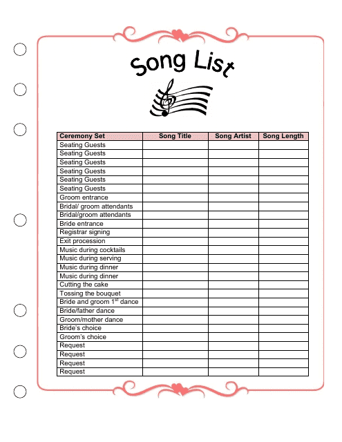 But with so many songs to choose from, it can be overwhelming to narrow down your selections. That’s where a printable wedding song playlist template can come in handy. By organizing your favorite tracks into a structured format, you can ensure that every moment of your special day is accompanied by the perfect soundtrack.