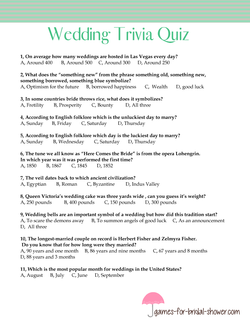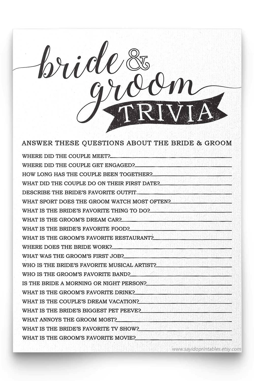 Free Printable Bride And Groom Trivia Quiz For Bridal Shower