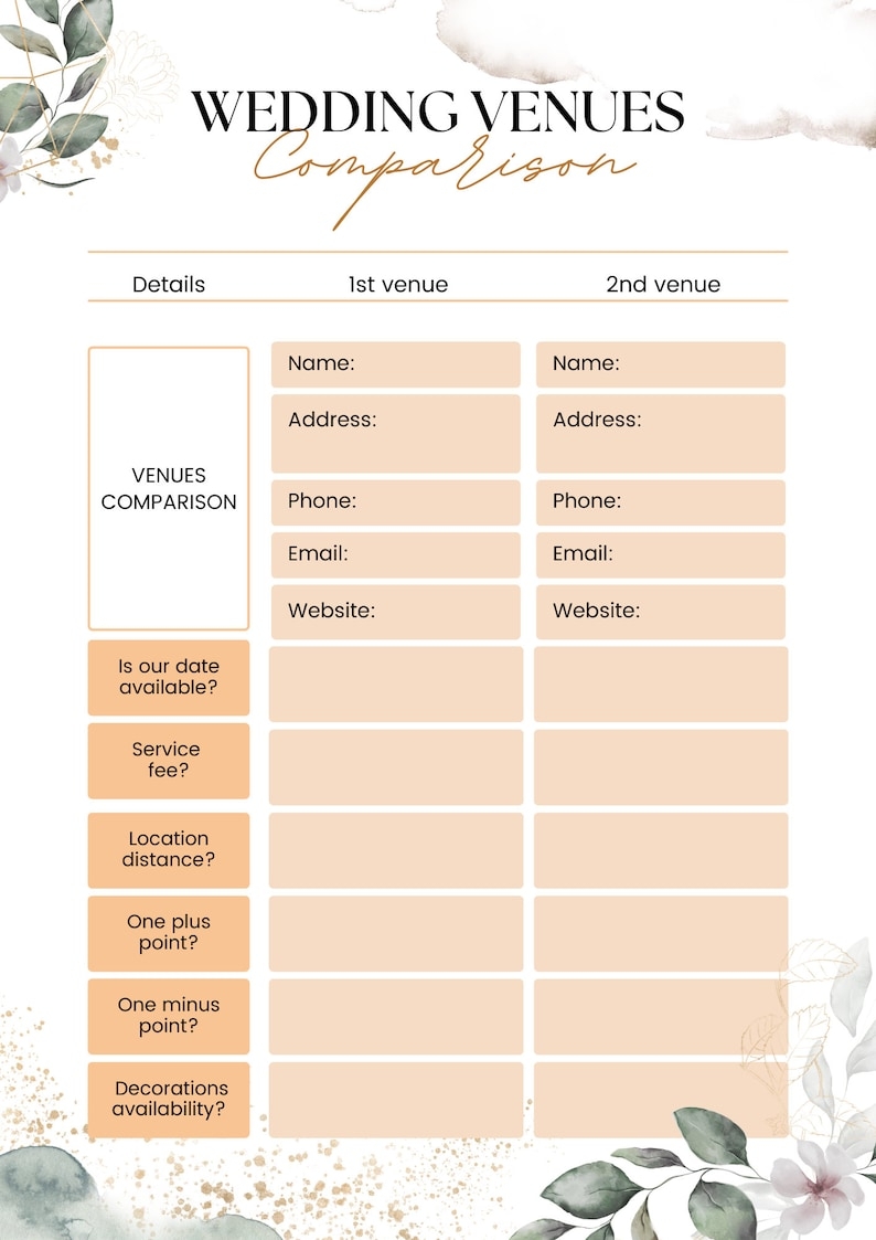 So, take the time to create a printable wedding venue comparison sheet and start planning your dream wedding with ease and confidence.