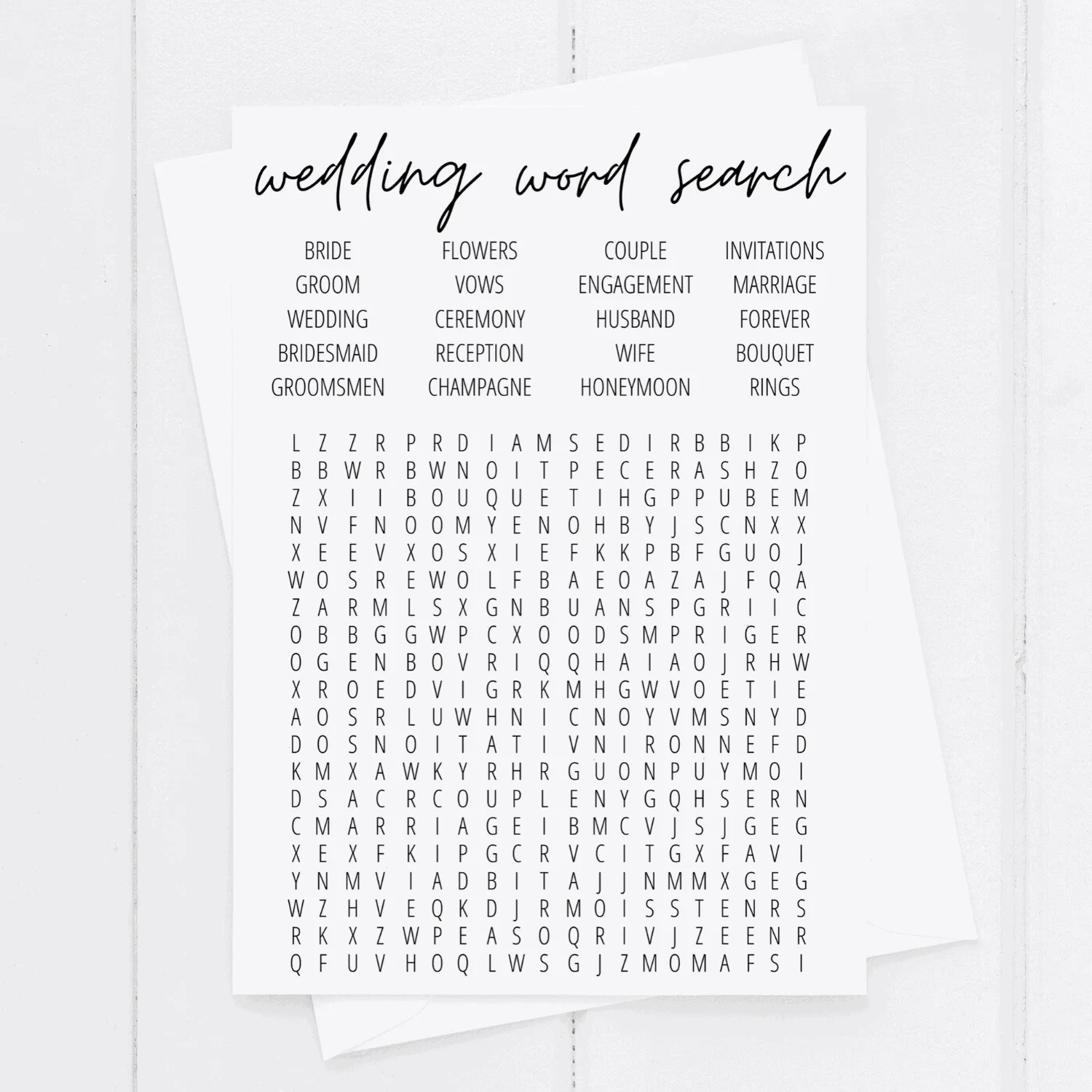 These word searches can be a great icebreaker for guests who may not know each other well, as they provide a fun and lighthearted activity for people to enjoy together. They can also be a fun way to keep kids entertained during the reception, giving them something to do while the adults mingle and celebrate.
