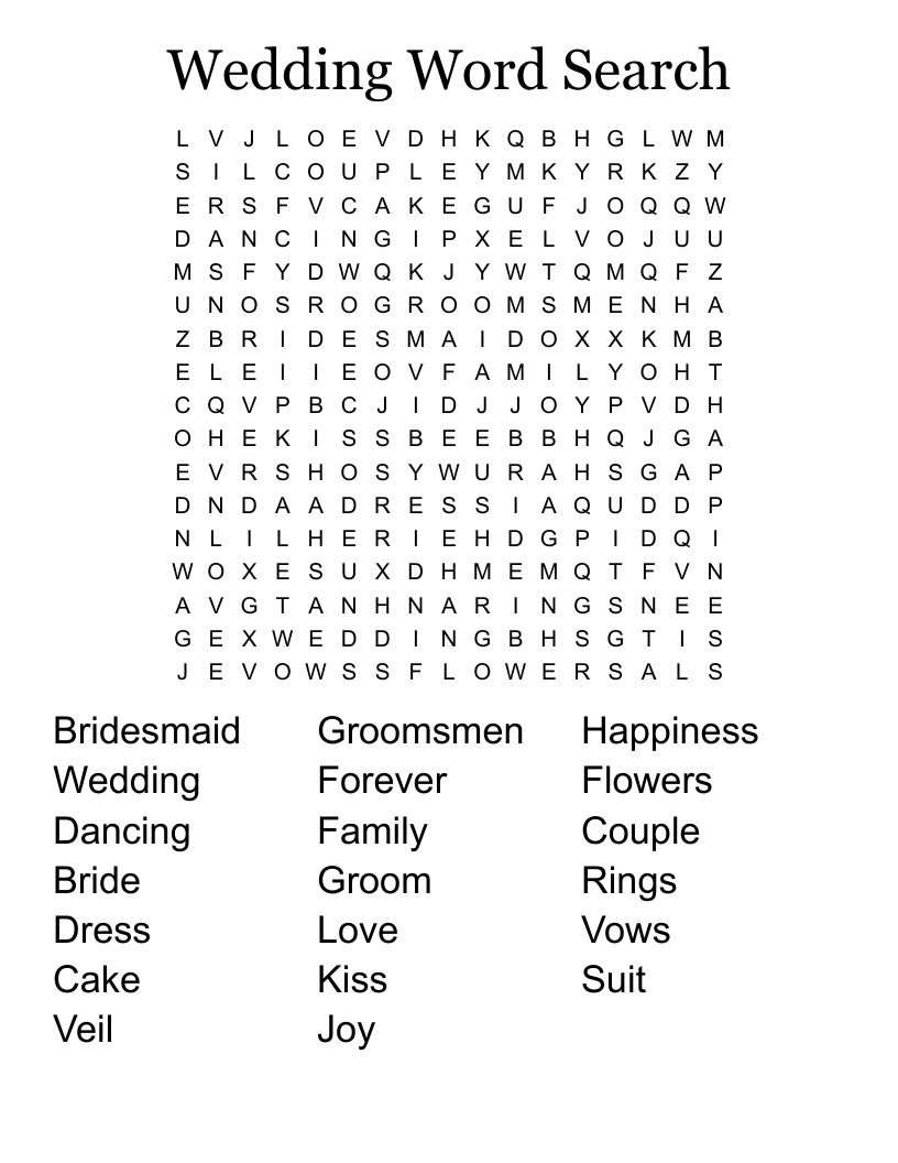 Are you looking for a fun and interactive activity to entertain your guests at your wedding reception? Look no further than a printable wedding word search! This classic puzzle game is a great way to keep your guests engaged and entertained while they wait for the festivities to begin.