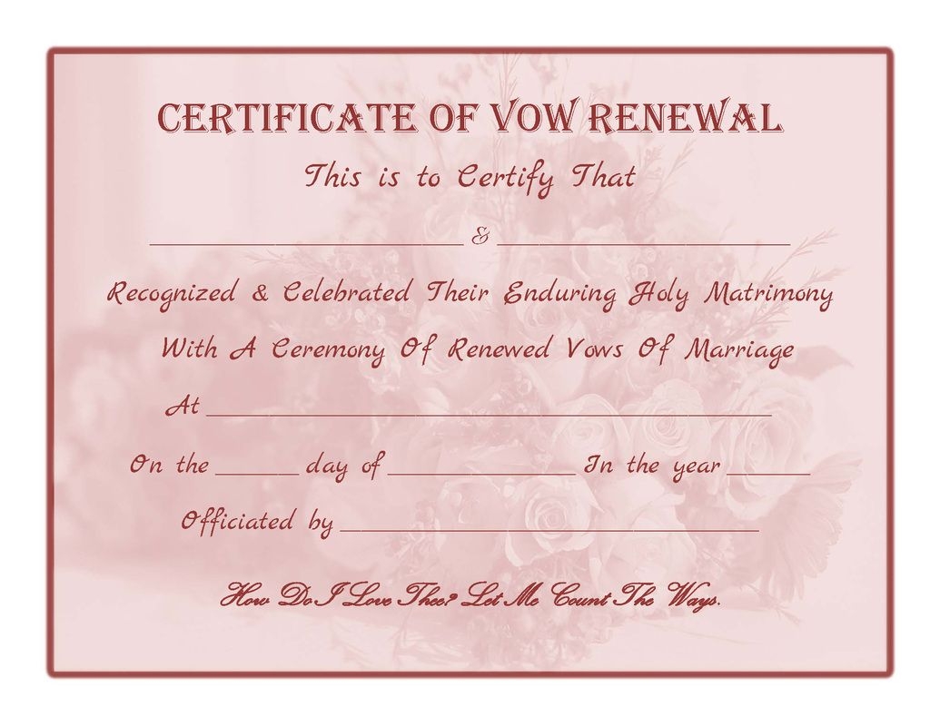 Free Printable Vow Renewal Certificate Bouquet Red Tint Renewal Of