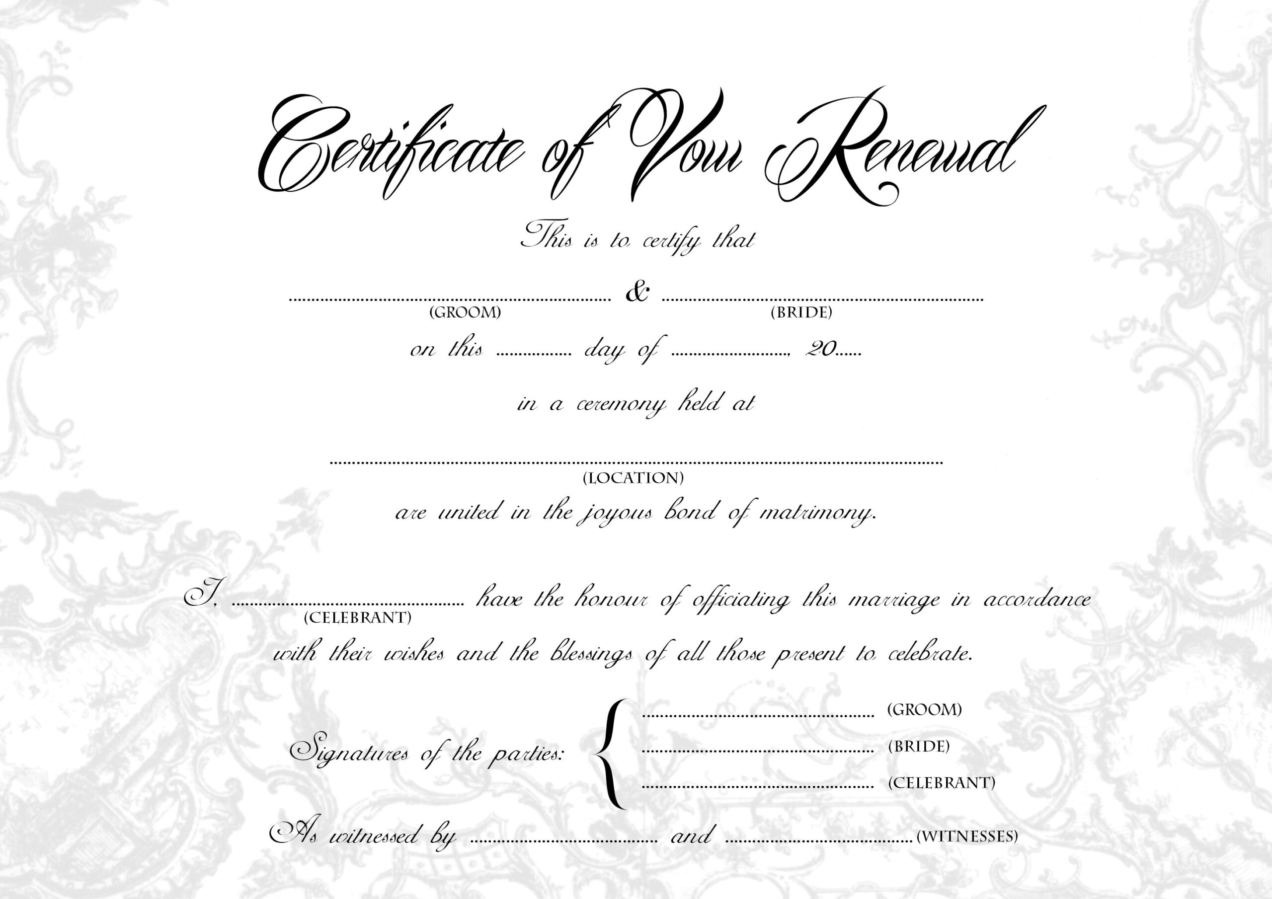 Easily Download and Print Renewal Of Wedding Vows Certificate Printable