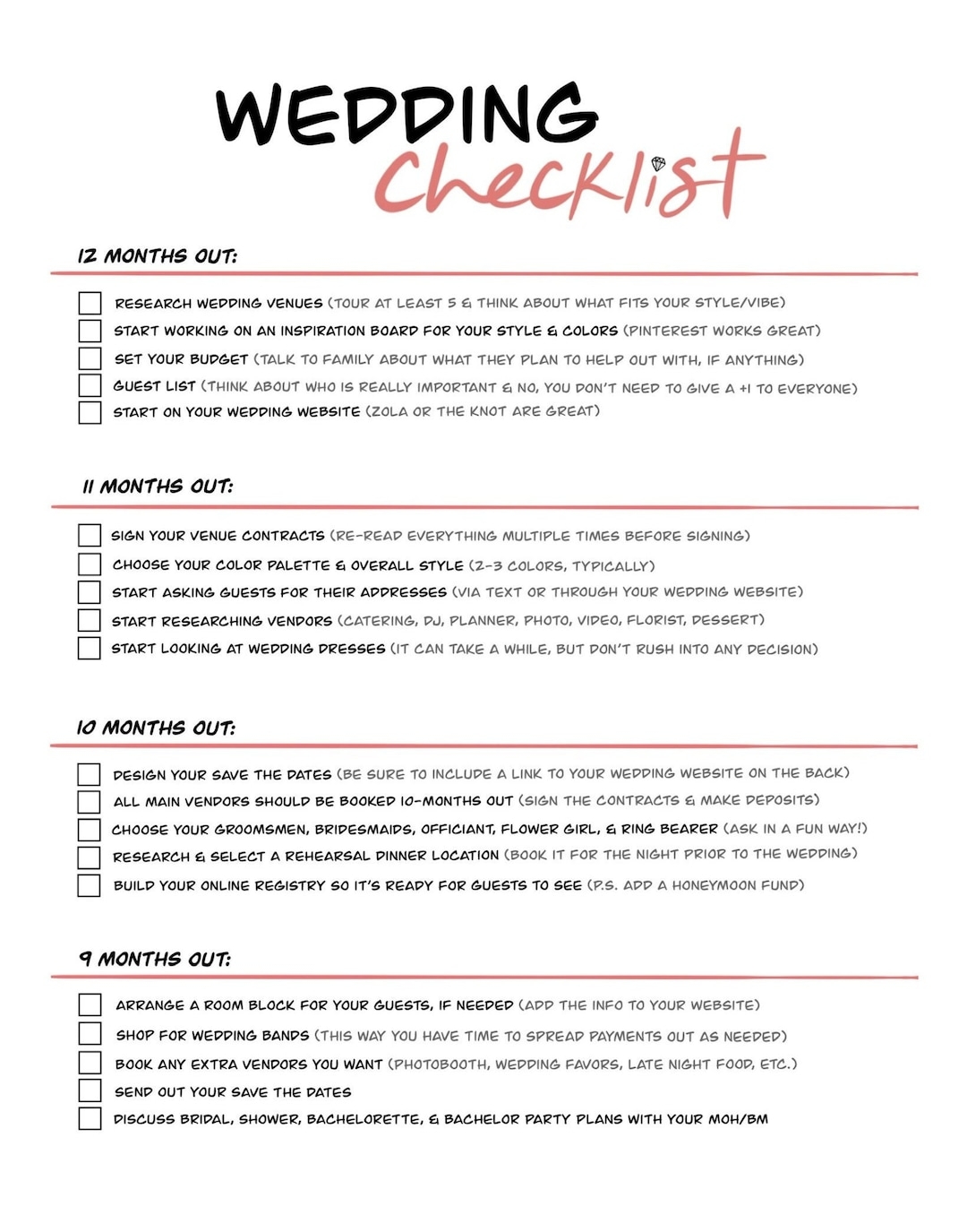 2024 Wedding Planning Checklist With Printable Timeline U0026 To Do