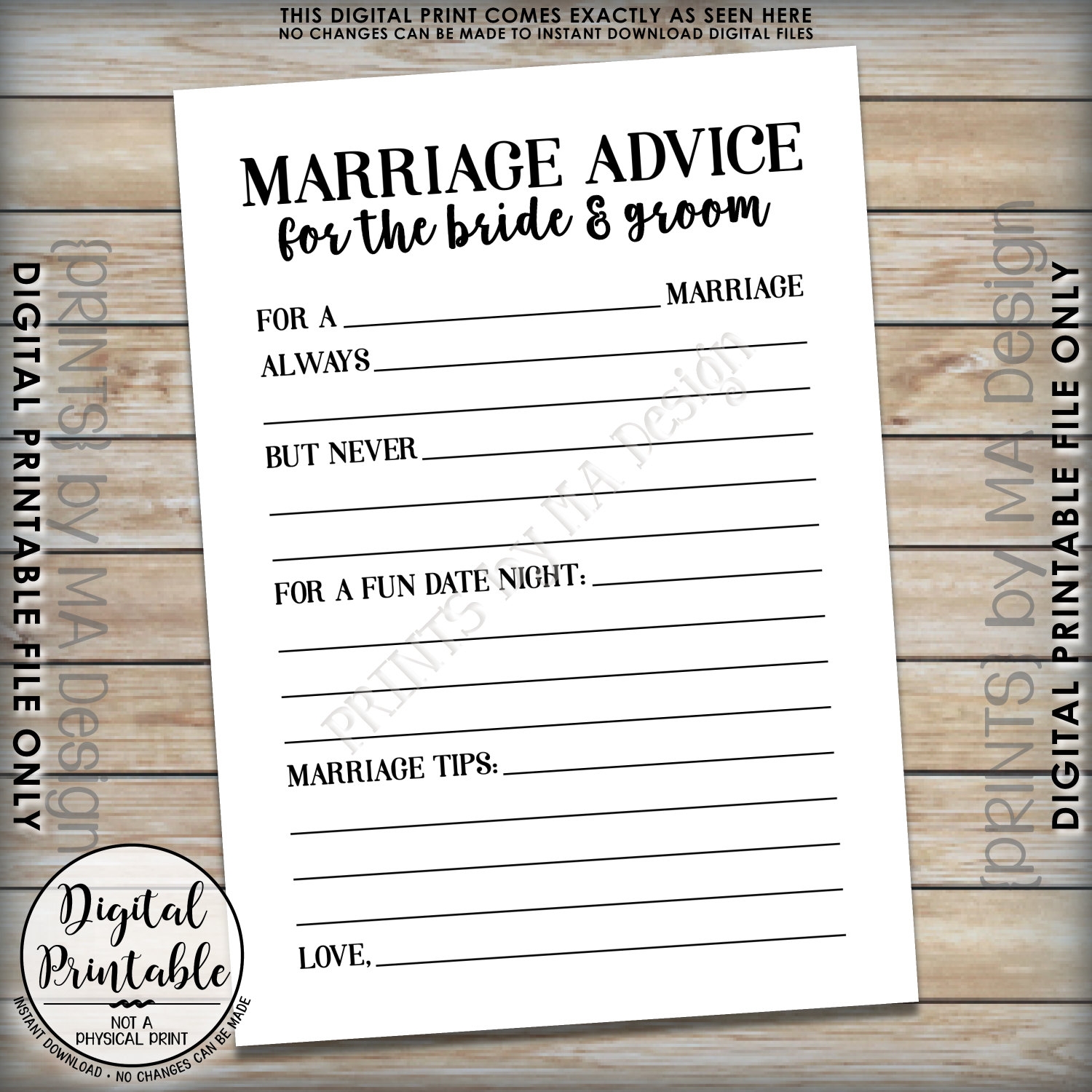 Wedding Advice Cards Printable Advice For The By CKweddingcrafts