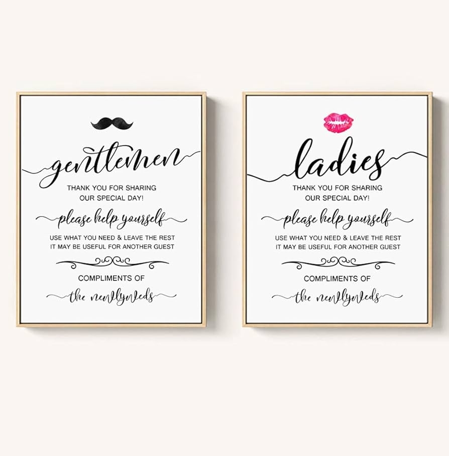 In conclusion, wedding bathroom signs may seem like a small detail, but they can make a big impact on the overall ambiance of your special day. Whether you choose elegant, humorous, or vintage-inspired designs, printable signs offer a convenient and customizable option for adding a personal touch to your wedding decor.