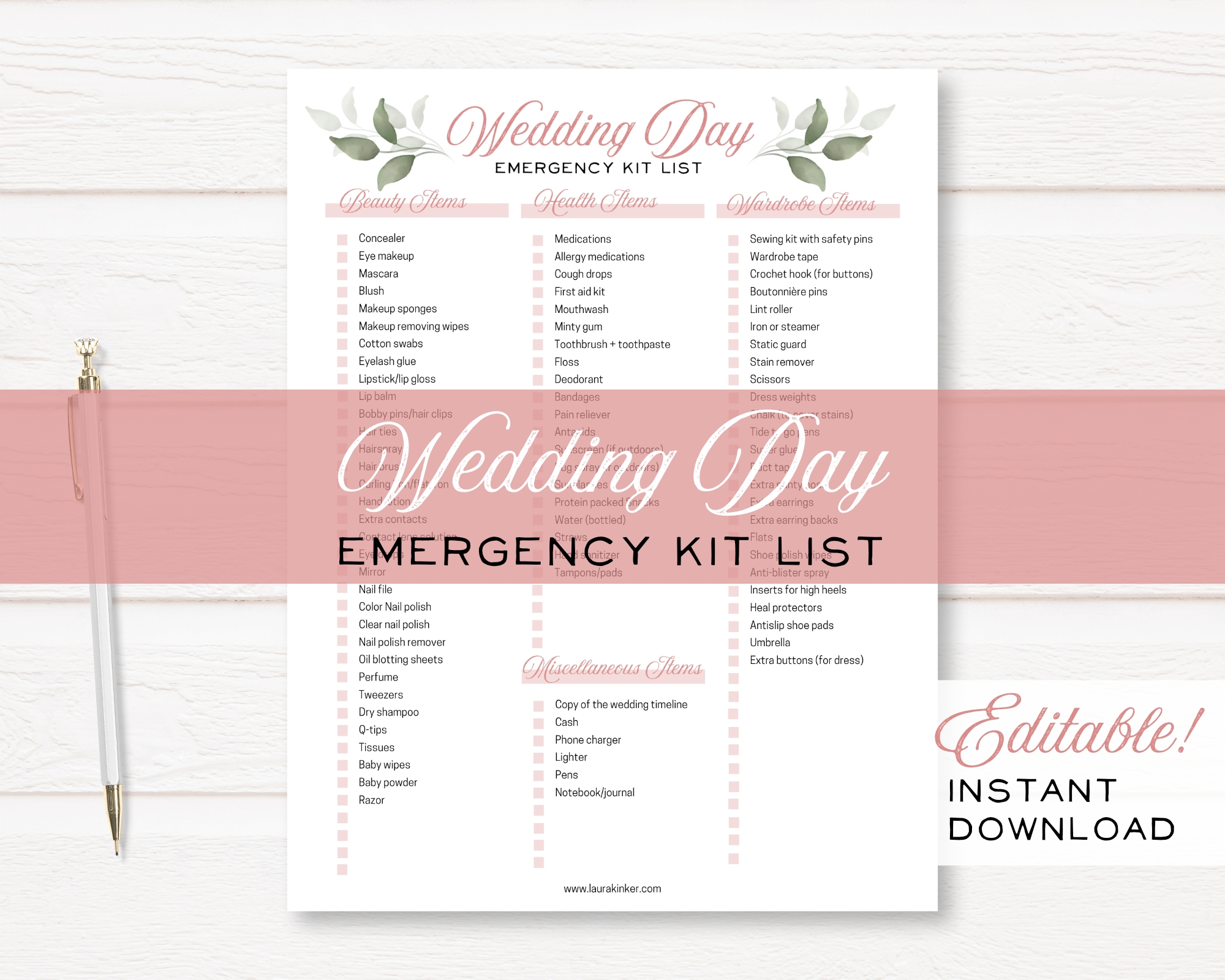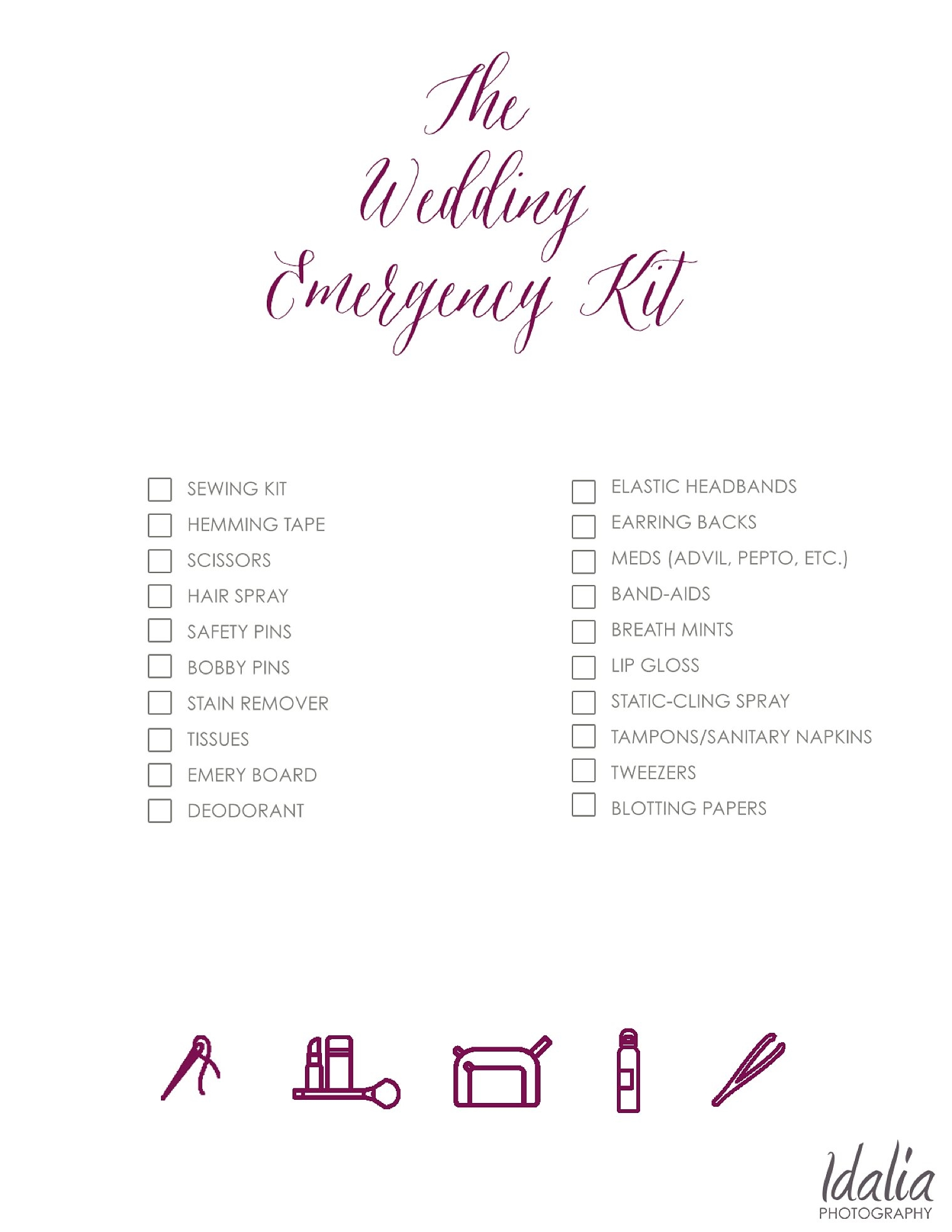 Wedding Day Emergency Kit Checklist Printable