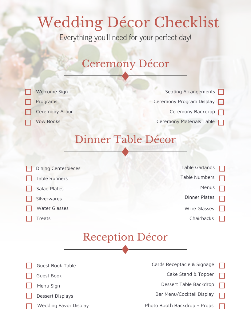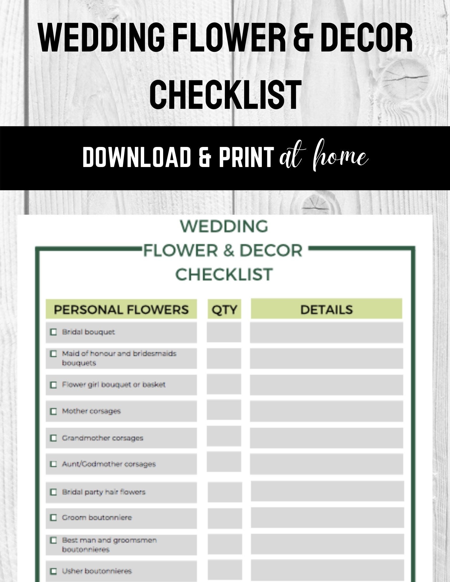 Wedding Flower U0026 Decor Checklist Green EtsyWedding Flower U0026 Decor Checklist Green Etsy