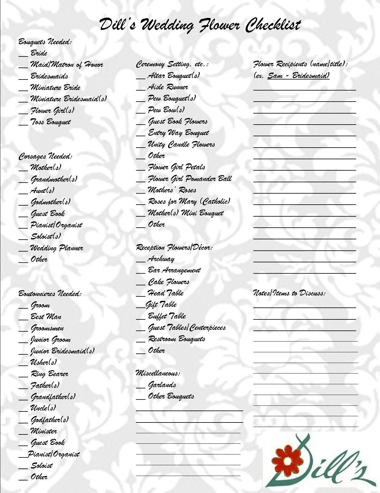 Wedding Flower Checklist Printable
