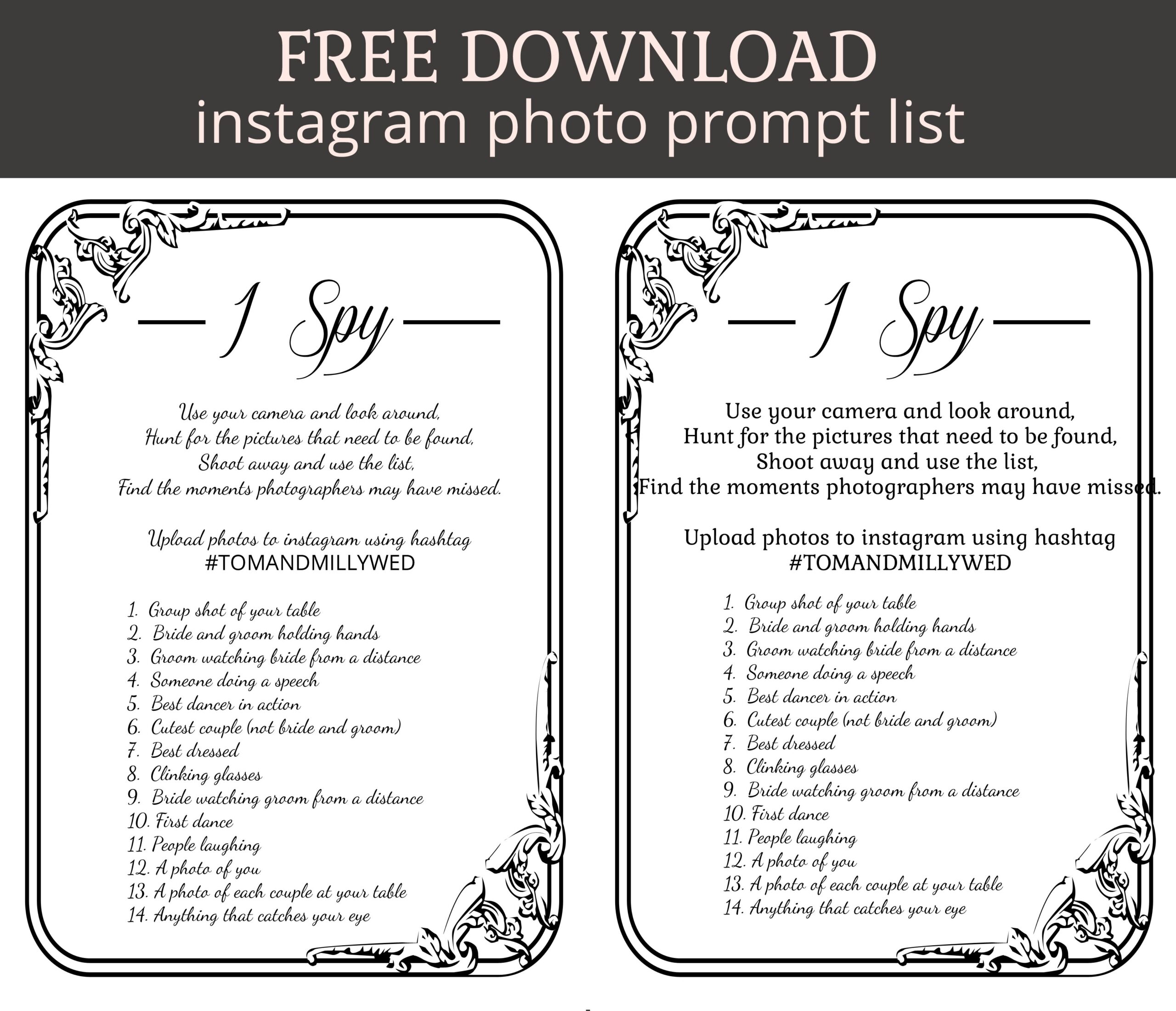 I Spy Prompt Sheet For Instagram Wedding Photo Uploads FREE DOWNLOAD UK Wedding Styling U0026 Decor Blog The Wedding Of My Dreams