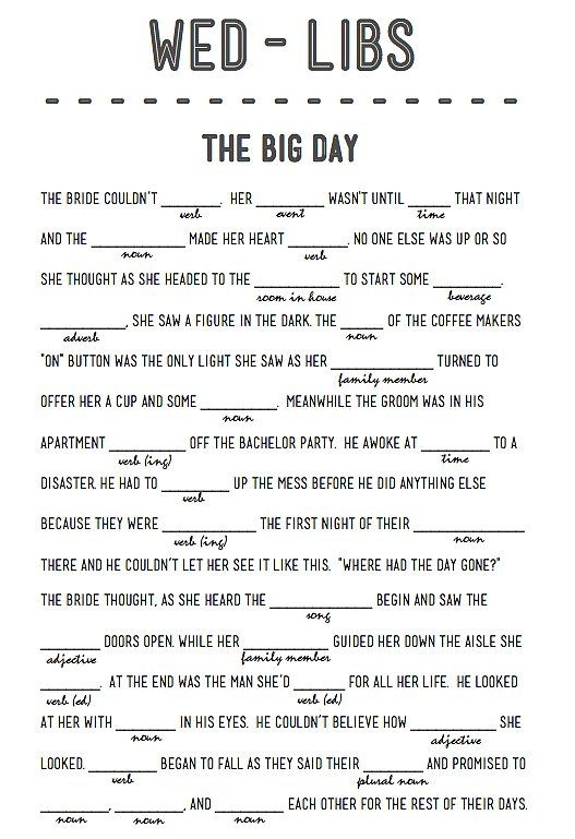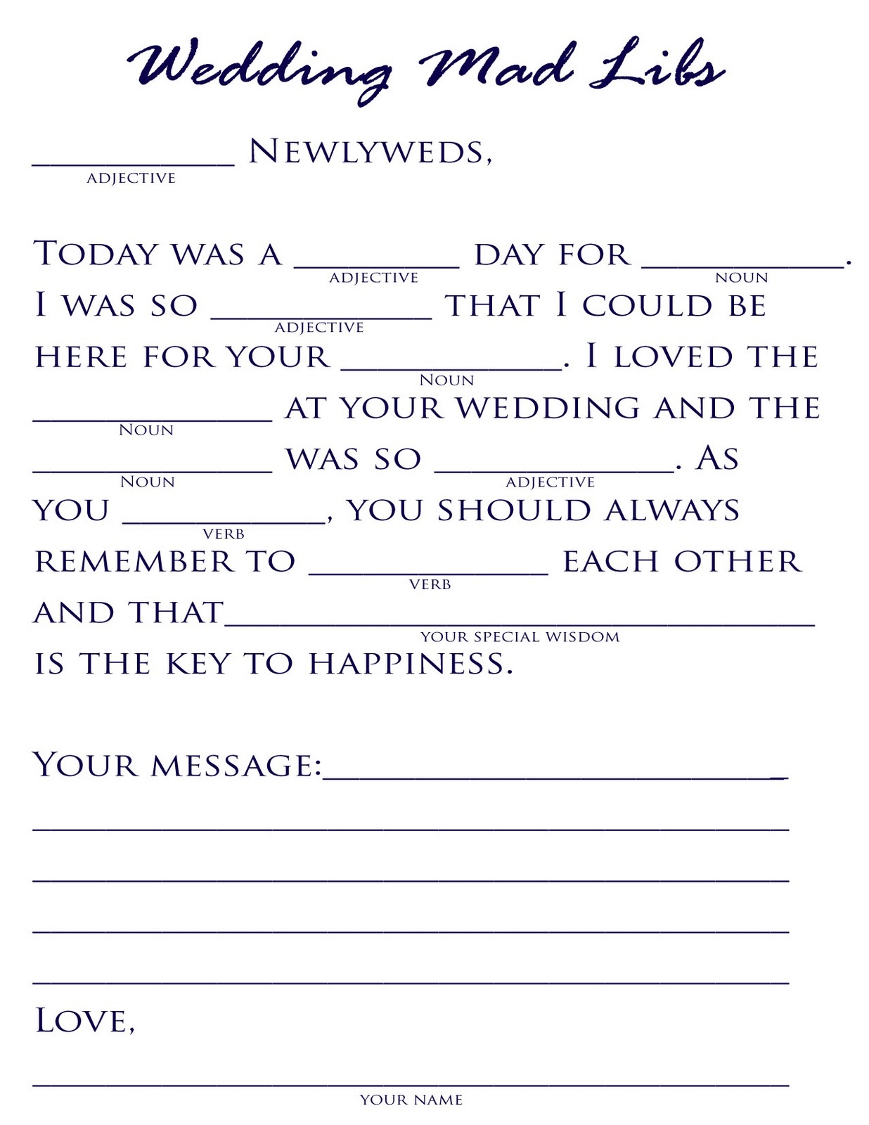 14 Free Fun And Printable Wedding Mad Libs Wedding Mad Libs Bridal