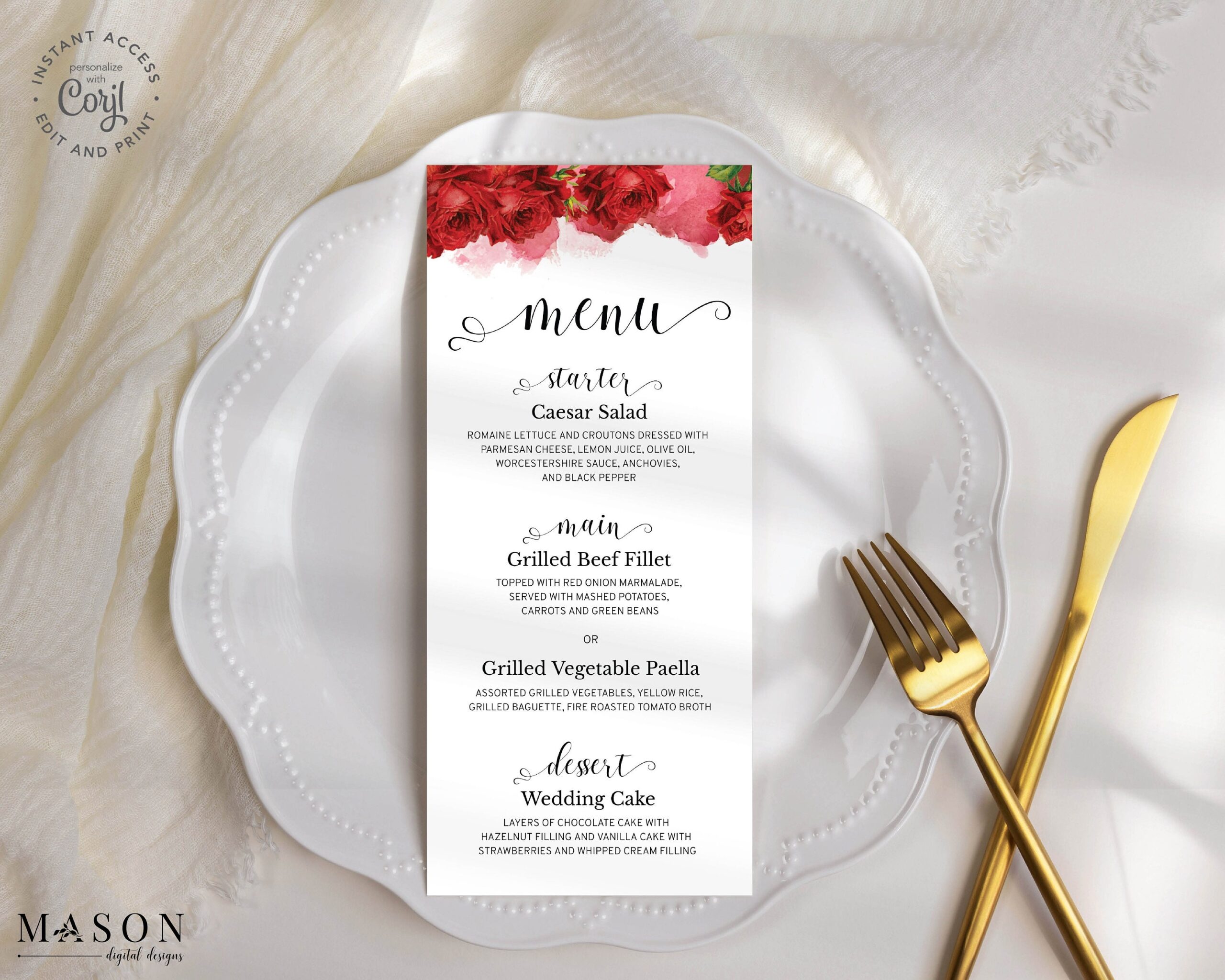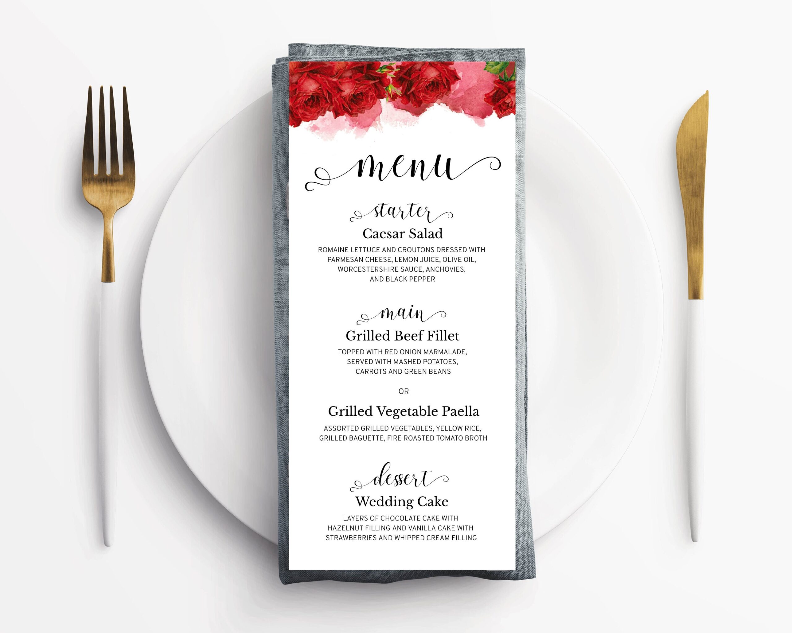 Wedding Menu Printable Template With Red Roses And Red EtsyWedding Menu Printable Template With Red Roses And Red Etsy