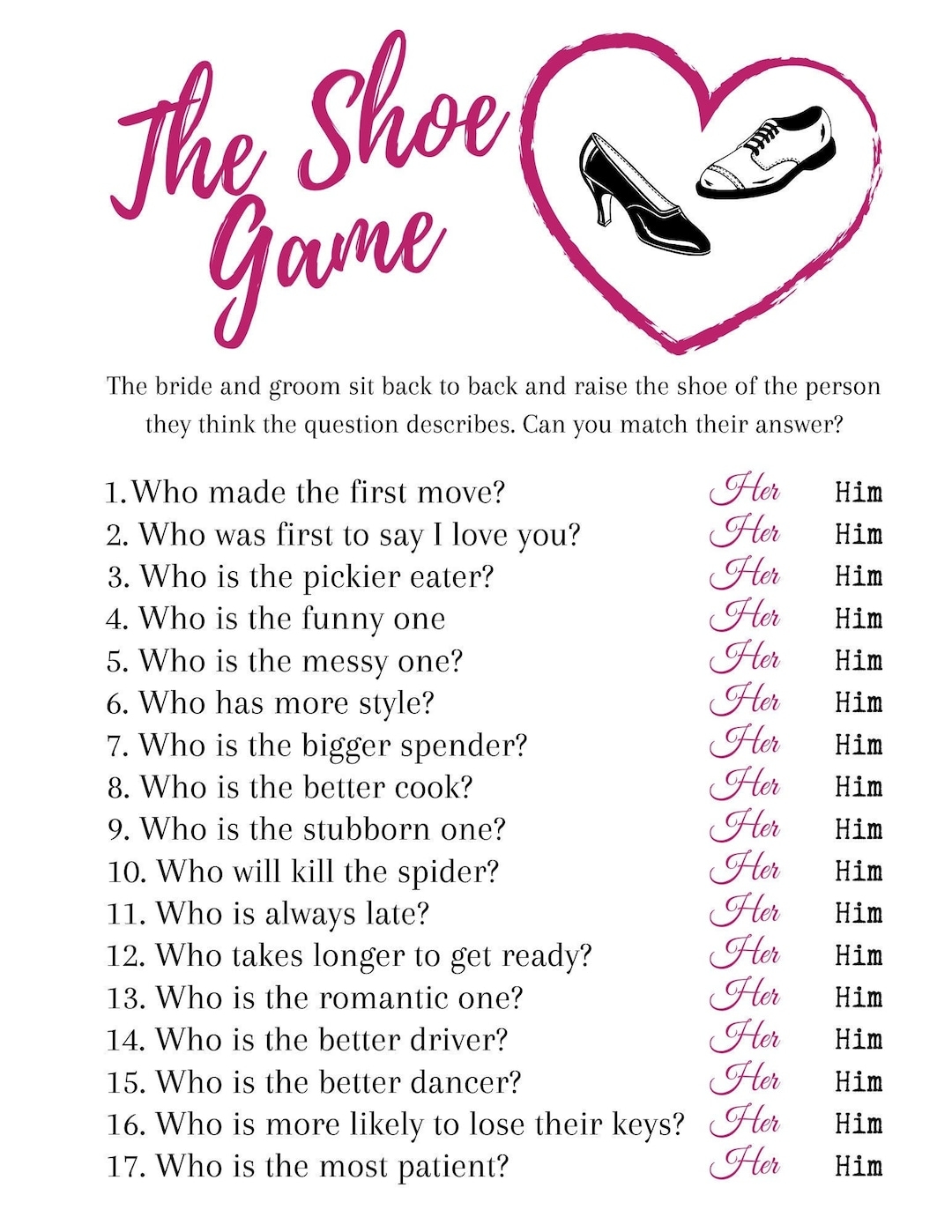Wedding Shoe Game Questions Printable Printable Free Templates