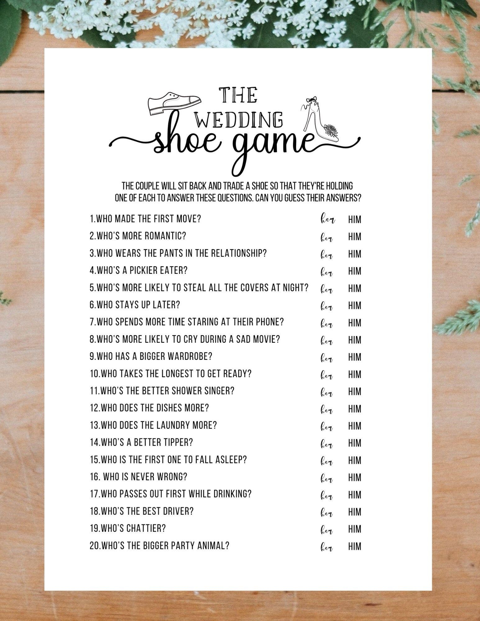 Whether you’re a guest looking to add some fun to the wedding reception or a couple wanting to entertain your guests, the wedding shoe game is a great choice. With the help of printable templates, you can easily plan out the questions and make sure that everyone has a great time playing this classic game.