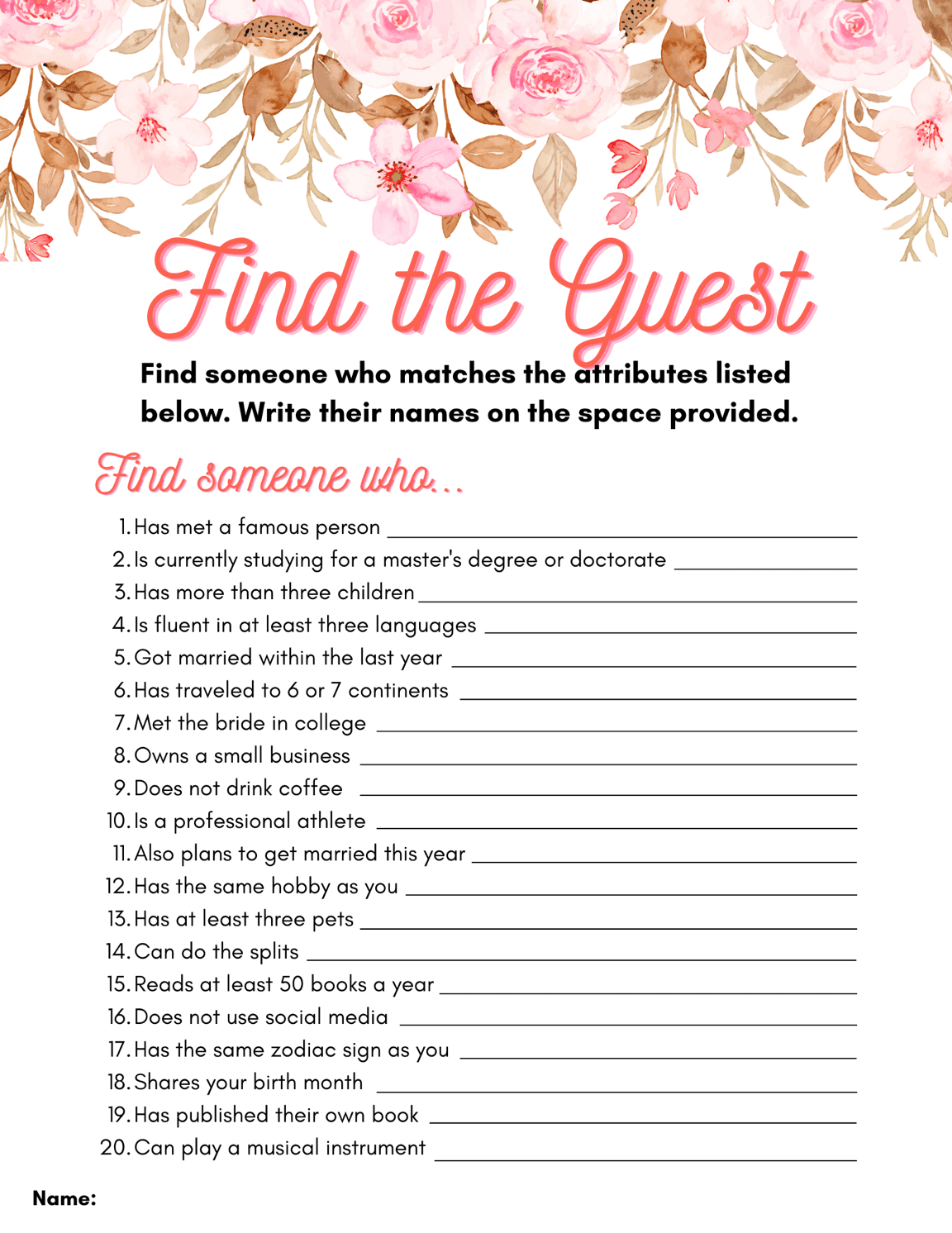 Find The Guest Bridal Shower Game 3 Free Printable PDFs