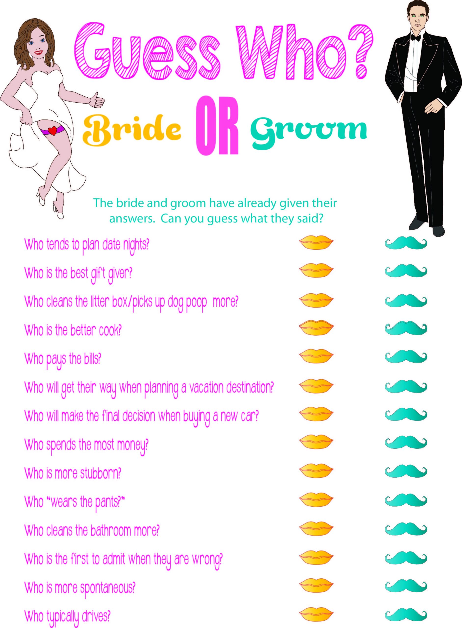 This game is a great way for guests to test their knowledge of the bride. Print out a list of questions about the bride, such as her favorite color, food, or movie. Guests must answer the questions to the best of their ability. The guest with the most correct answers wins a prize!